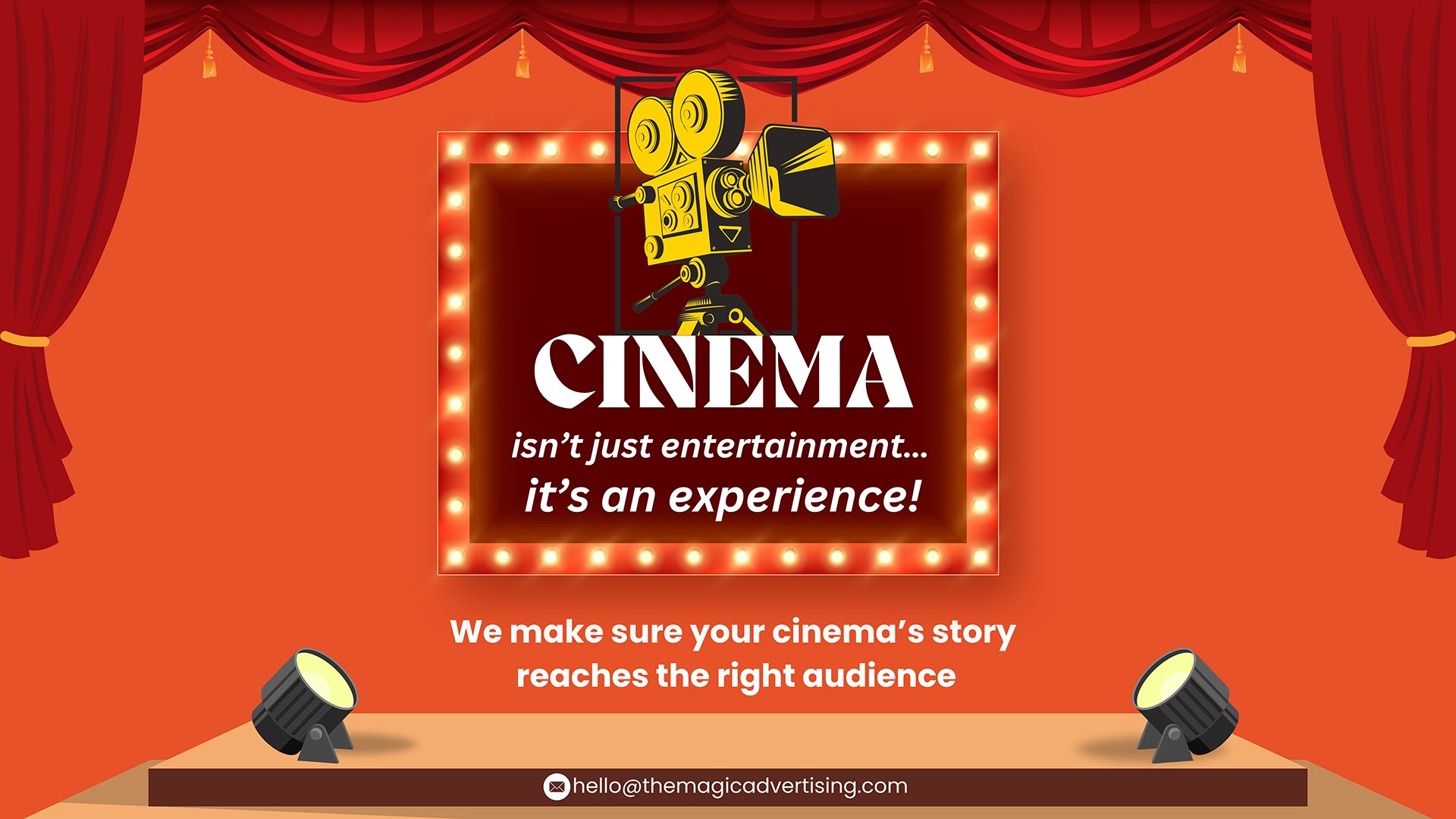 We harness endless creativity to deliver a full spectrum of services that empower cinemas to thrive. From cinema creative design and social media strategies to website development, customer care solutions, and cinema ad sales, we provide the tools and expertise needed to captivate audiences and drive growth. With limitless possibilities, we help cinemas flourish in an ever-evolving entertainment landscape.